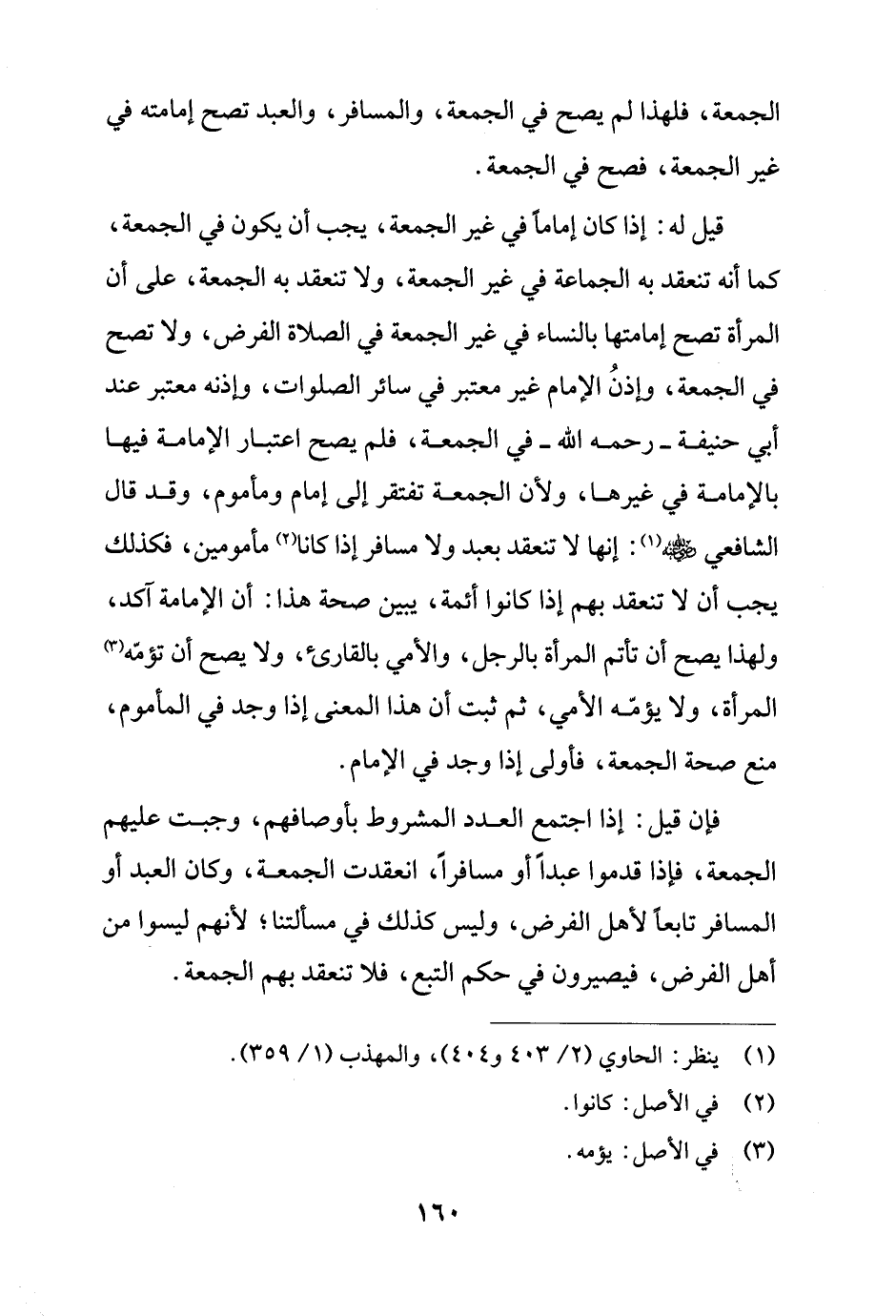 الجمعة، فلهذا لم يصح في الجمعة، والمسافر، والعبد تصح إمامته في غير الجمعة، فصح في الجمعة.