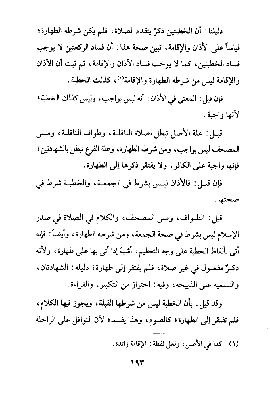 وقد قيل: بأن الخطبة ليس من شرطها القبلة، ويجوز فيها الكلام، فلم تفتقر إلى الطهارة؛ كالصوم، وهذا يفسد؛ لأن النوافل على الراحلة