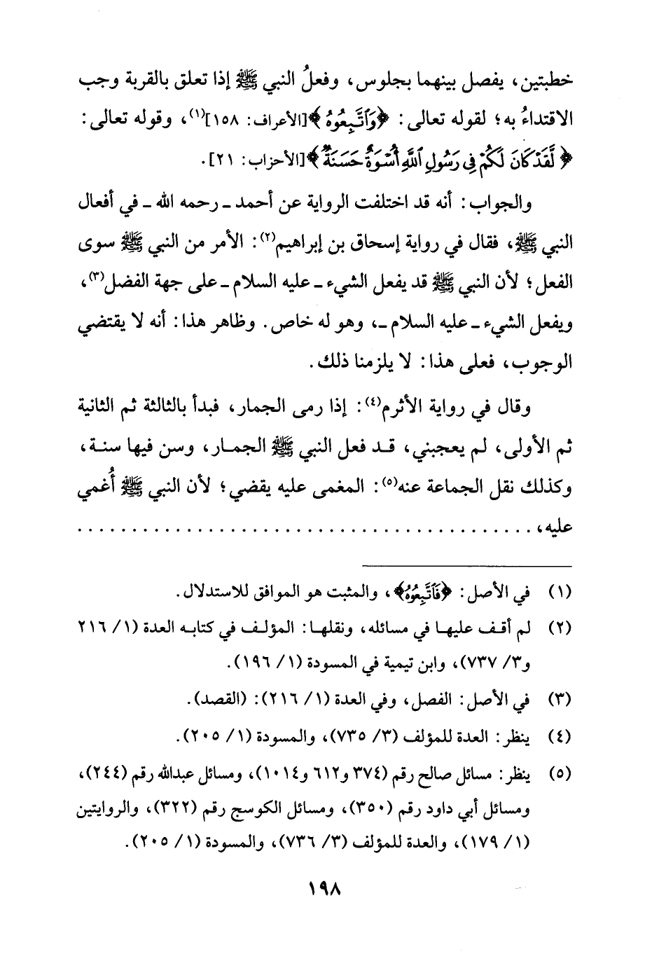 (¬5) ينظر: مسائل صالح رقم (374 و 612 و 1014)، ومسائل عبد الله رقم (244)، ومسائل أبي داود رقم (350)، ومسائل الكوسج رقم (322)، والروايتين (1/ 179)، والعدة للمؤلف (3/ 736)، والمسودة (1/ 205).