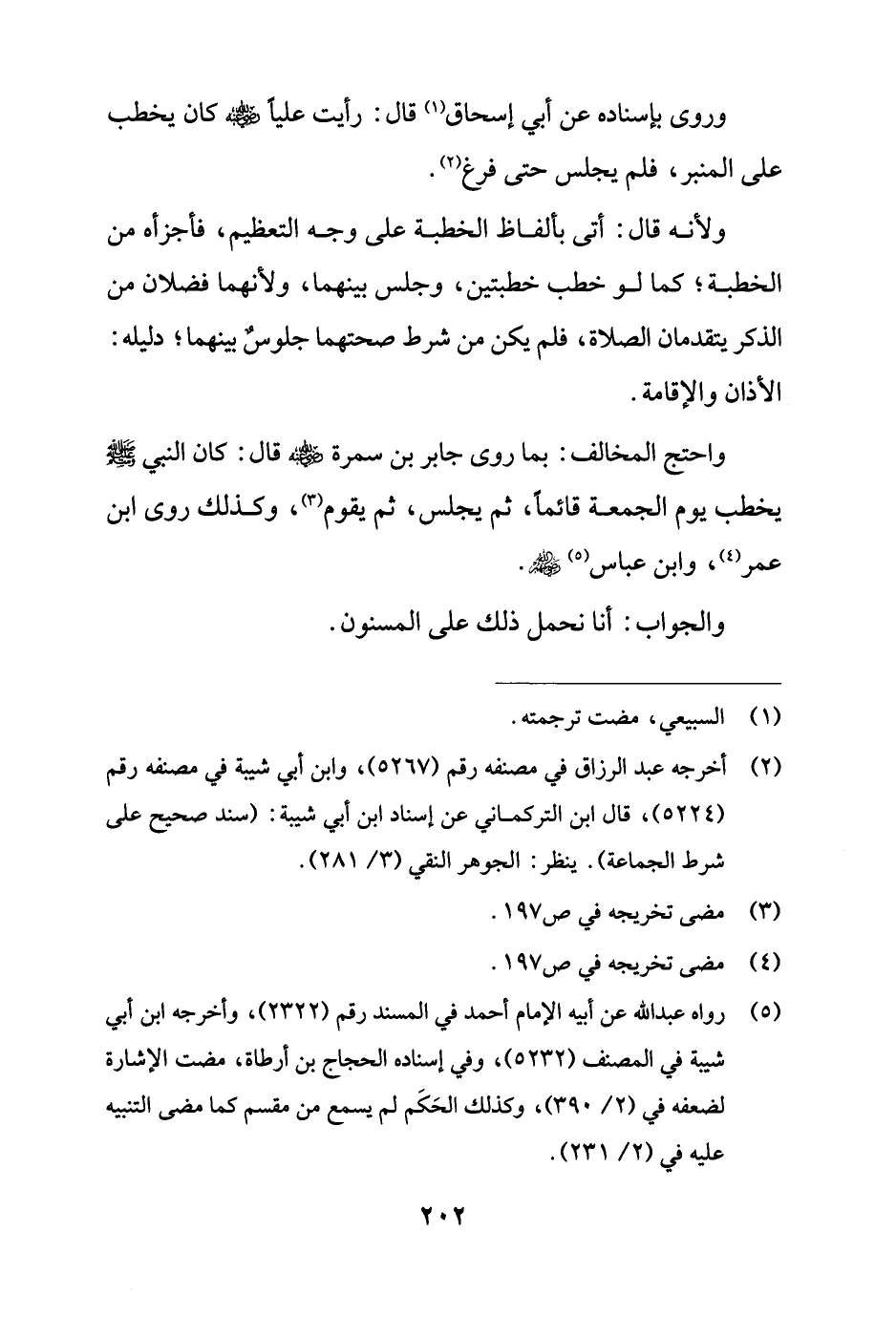 واحتج المخالف: بما روى جابر بن سمرة - رضي الله عنه - قال: كان النبي - صلى الله عليه وسلم - يخطب يوم الجمعة قائمًا، ثم يجلس، ثم يقوم (¬3)، وكذلك روى ابن عمر (¬4)، وابن عباس (¬5) - رضي الله عنهم -.