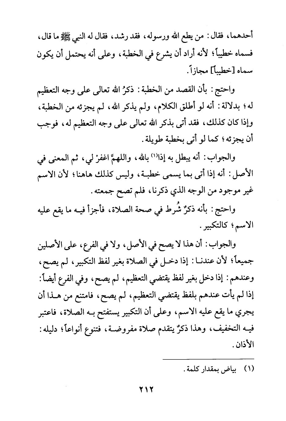 أحدهما، فقال: من يطع الله ورسوله، فقد رشد، فقال له النبي - صلى الله عليه وسلم - ما قال، فسماه خطيبًا؛ لأنه أراد أن يشرع في الخطبة، وعلى أنه يحتمل أن يكون سماه [خطيبًا] مجازًا.