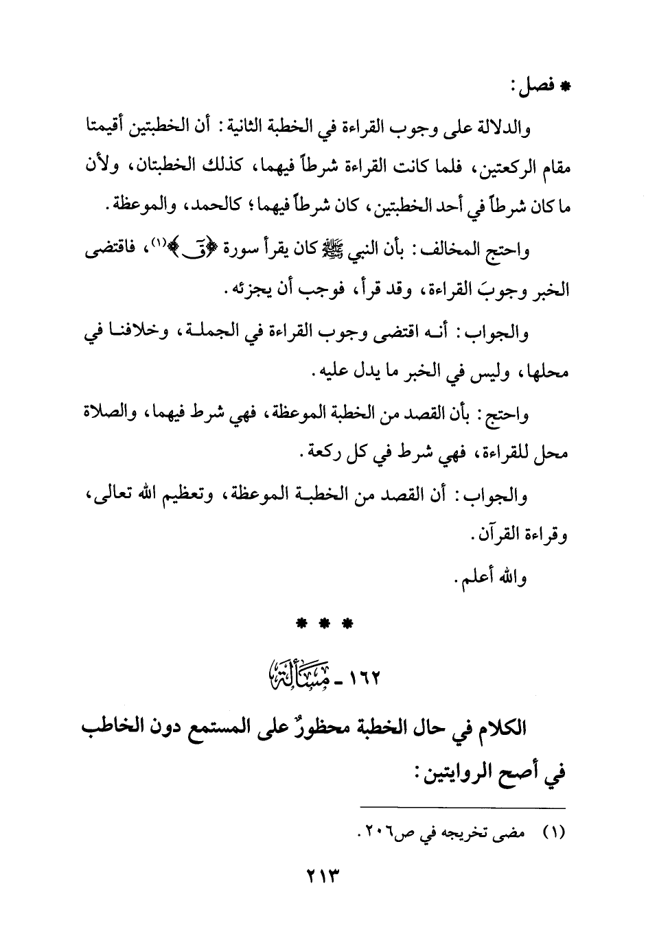 162 - مَسْألَة: الكلام في حال الخطبة محظورٌ على المستمع دون الخاطب في أصح الروايتين: