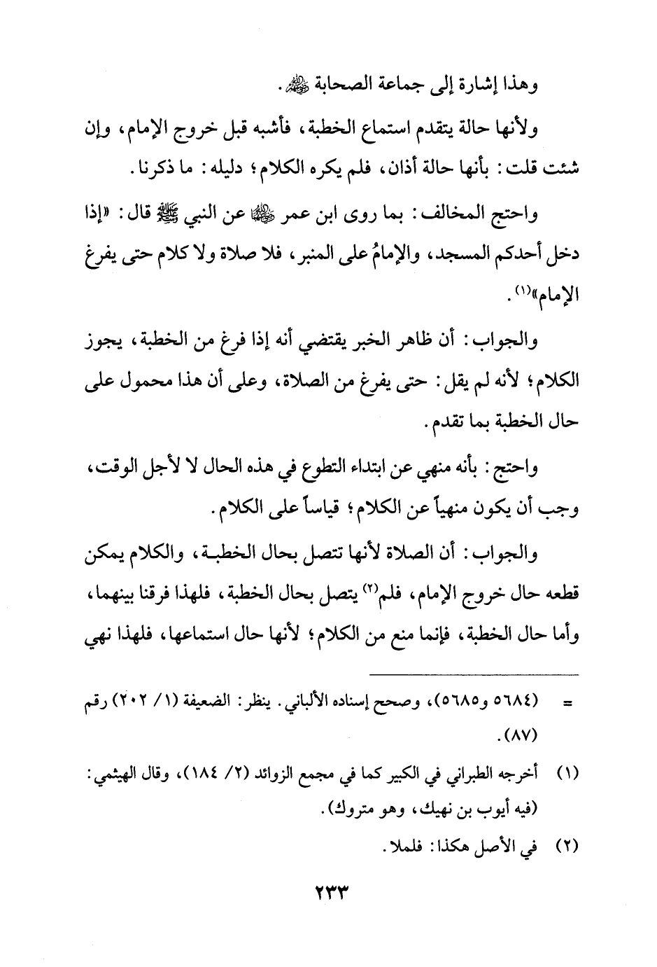 والجواب: أن ظاهر الخبر يقتضي أنه إذا فرغ من الخطبة، يجوز الكلام؛ لأنه لم يقل: حتى يفرغ من الصلاة، وعلى أن هذا محمول على حال الخطبة بما تقدم.