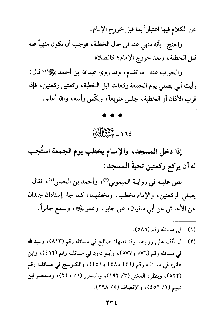 (¬2) لم أقف على روايته، وقد نقلها: صالح في مسائله رقم (813)، وعبد الله في مسائله رقم (576 و 577)، وأبو داود في مسائله رقم (412)، وابن هانئ في مسائله رقم (444 و 448 و 451)، والكوسج في مسائله رقم (522)، وينظر: المغني (3/ 192)، والمحرر (1/ 241)، ومختصر ابن تميم (2/ 452)، والإنصاف (5/ 298).