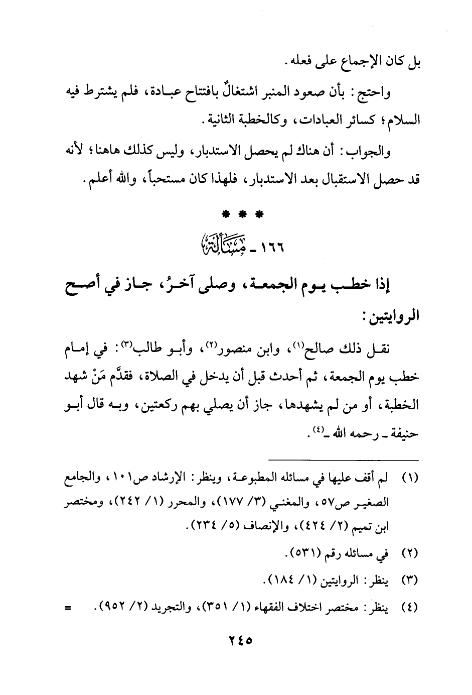 166 - مَسْألَة: إذا خطب يوم الجمعة، وصلى آخرُ، جاز في أصح الروايتين: