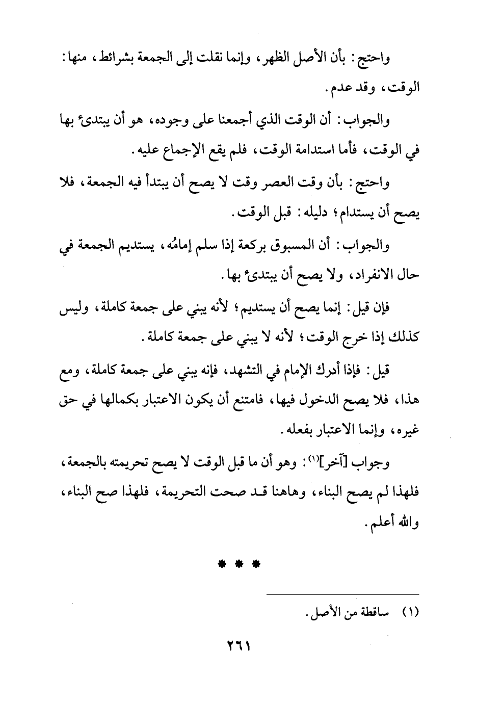 والجواب: أن الوقت الذي أجمعنا على وجوده، هو أن يبتدئ بها في الوقت، فأما استدامة الوقت، فلم يقع الإجماع عليه.