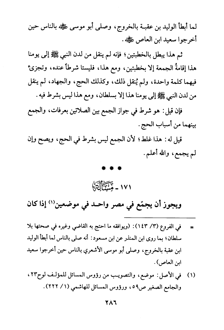(¬1) في الأصل: موضع، والتصويب من رؤوس المسائل للمؤلف لوح 23، والجامع الصغير ص 59، ورؤوس المسائل للهاشمي (1/ 222).