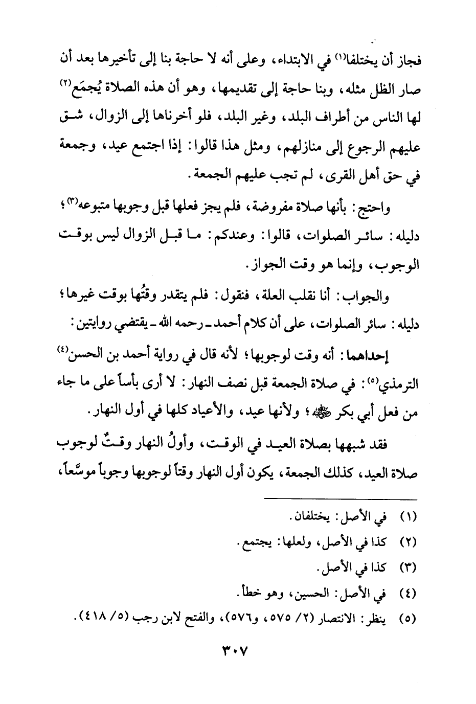 والجواب: أنا نقلب العلة، فنقول: فلم يتقدر وقتُها بوقت غيرها؛ دليله: سائر الصلوات، على أن كلام أحمد - رحمه الله - يقتضي روايتين: