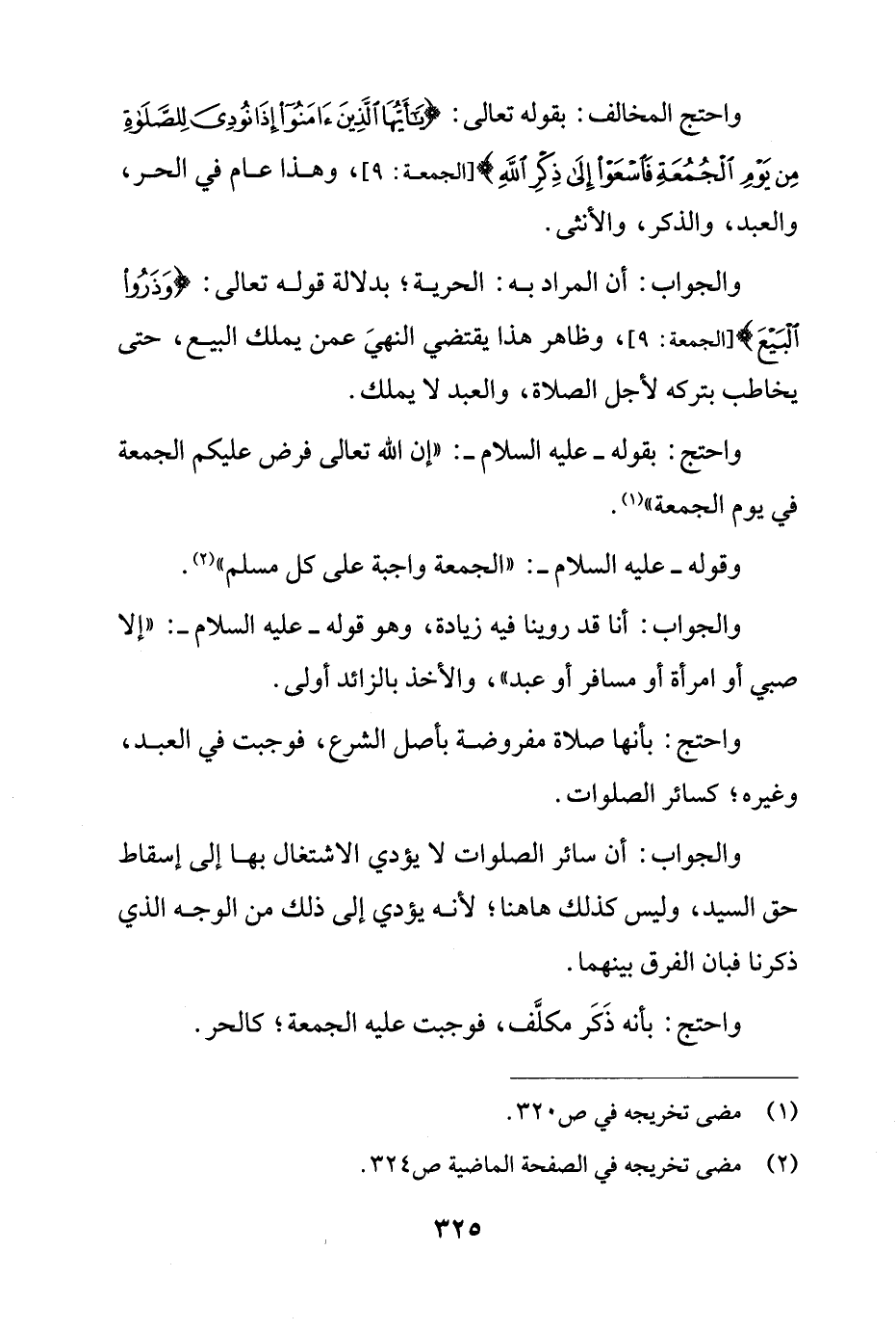 والجواب: أن سائر الصلوات لا يؤدي الاشتغال بها إلى إسقاط حق السيد، وليس كذلك ها هنا؛ لأنه يؤدي إلى ذلك من الوجه الذي ذكرنا فبان الفرق بينهما.
