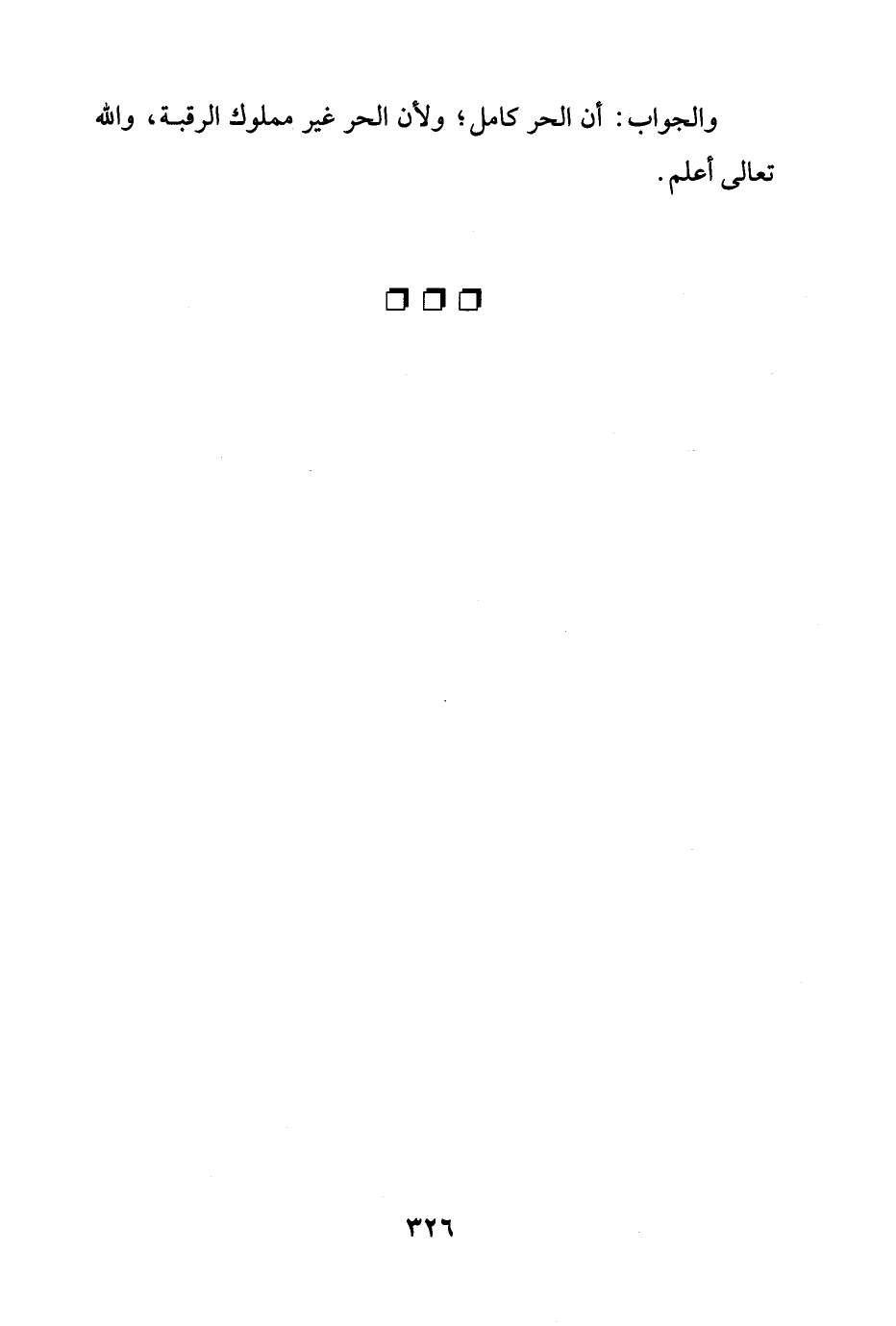 والجواب: أن الحر كامل؛ ولأن الحر غير مملوك الرقبة، والله تعالى أعلم.
