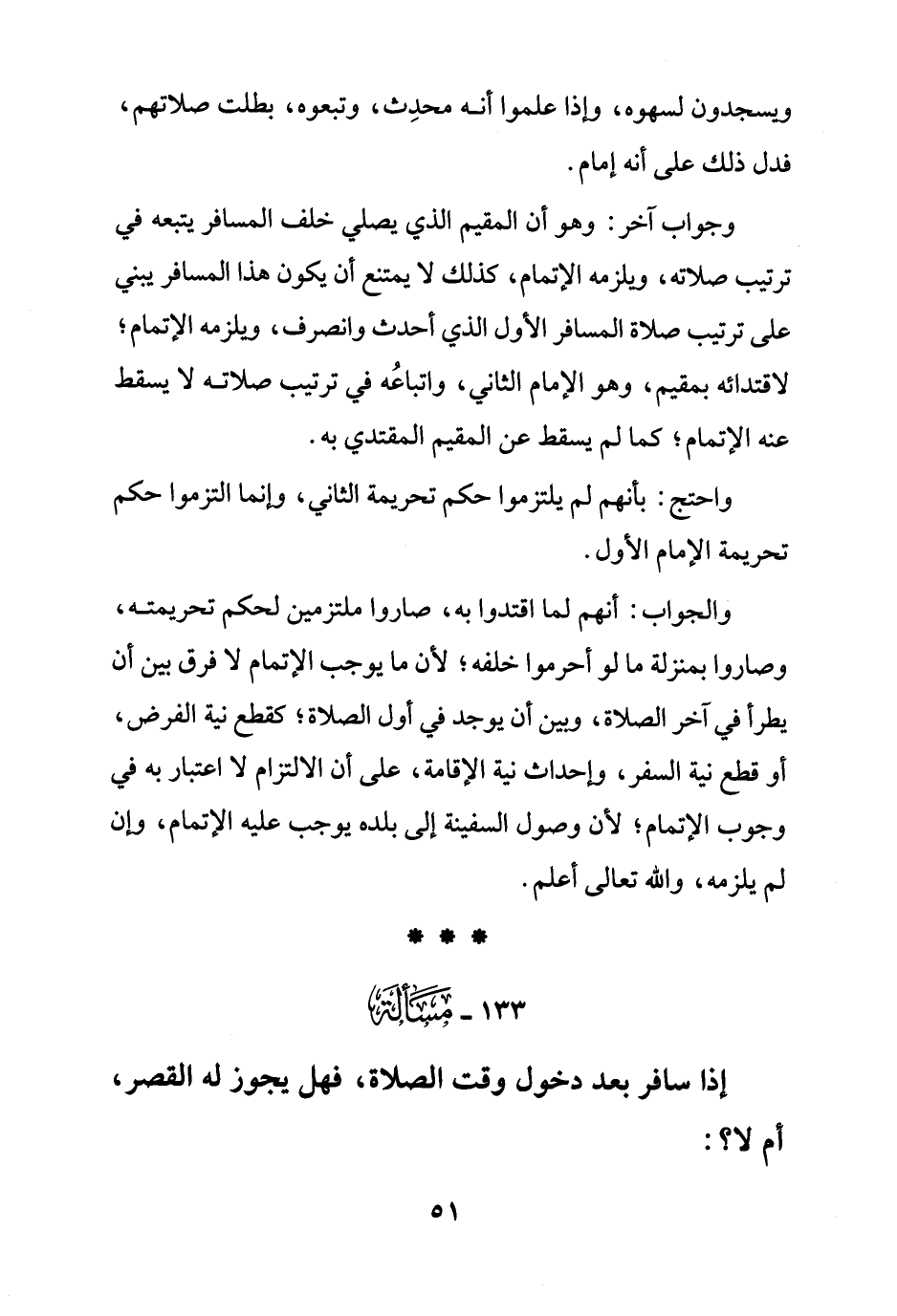 133 - مَسْألَة: إذا سافر بعد دخول وقت الصلاة، فهل يجوز له القصر، أم لا؟ :