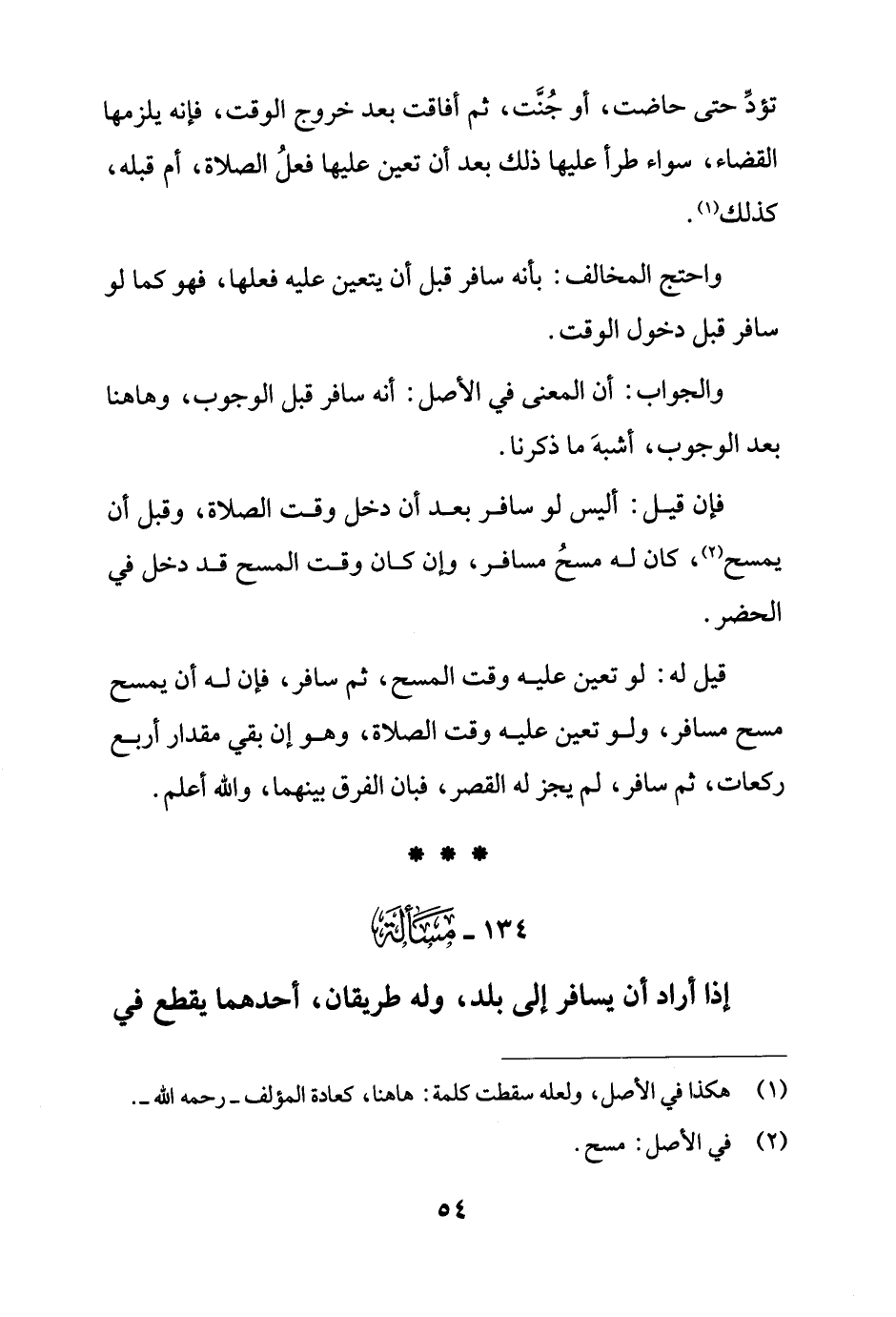 قيل له: لو تعين عليه وقت المسح، ثم سافر، فإن له أن يمسح مسح مسافر، ولو تعين عليه وقت الصلاة، وهو إن بقي مقدار أربع ركعات، ثم سافر، لم يجز له القصر، فبان الفرق بينهما، والله أعلم.