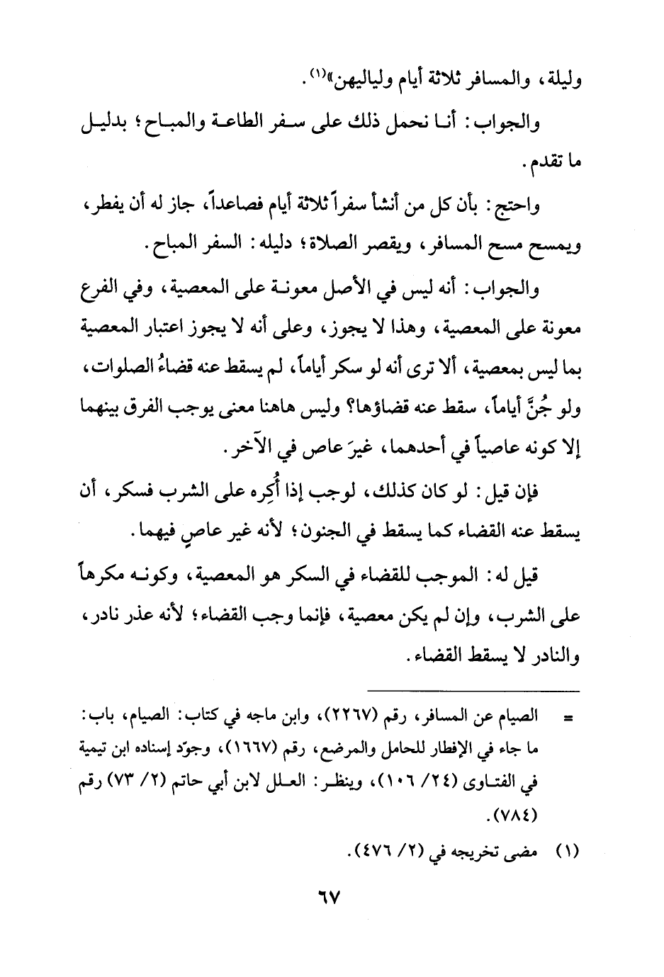 والجواب: أنا نحمل ذلك على سفر الطاعة والمباح؛ بدليل ما تقدم.