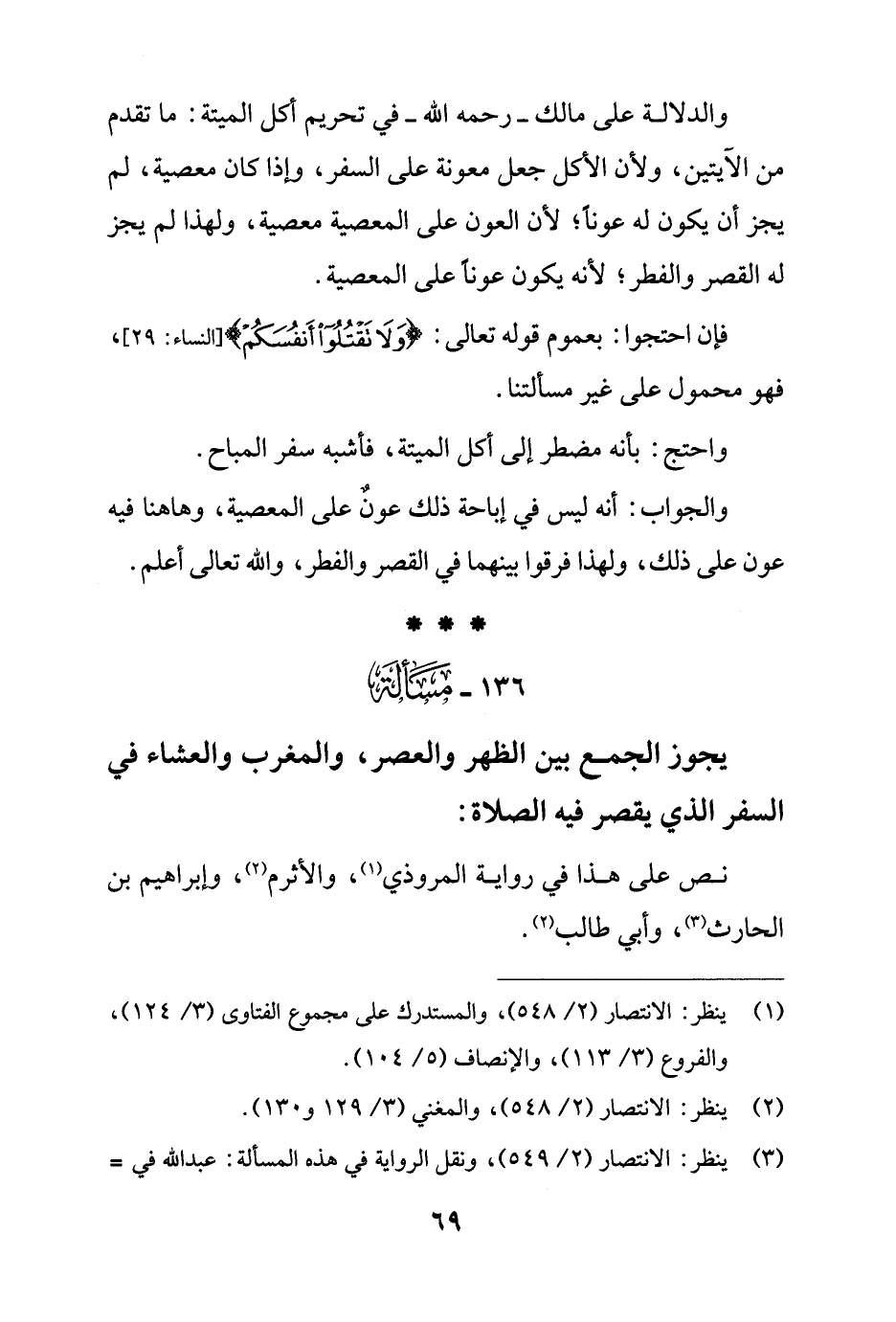 136 - مَسْألَة: يجوز الجمع بين الظهر والعصر، والمغرب والعشاء في السفر الذي يقصر فيه الصلاة: