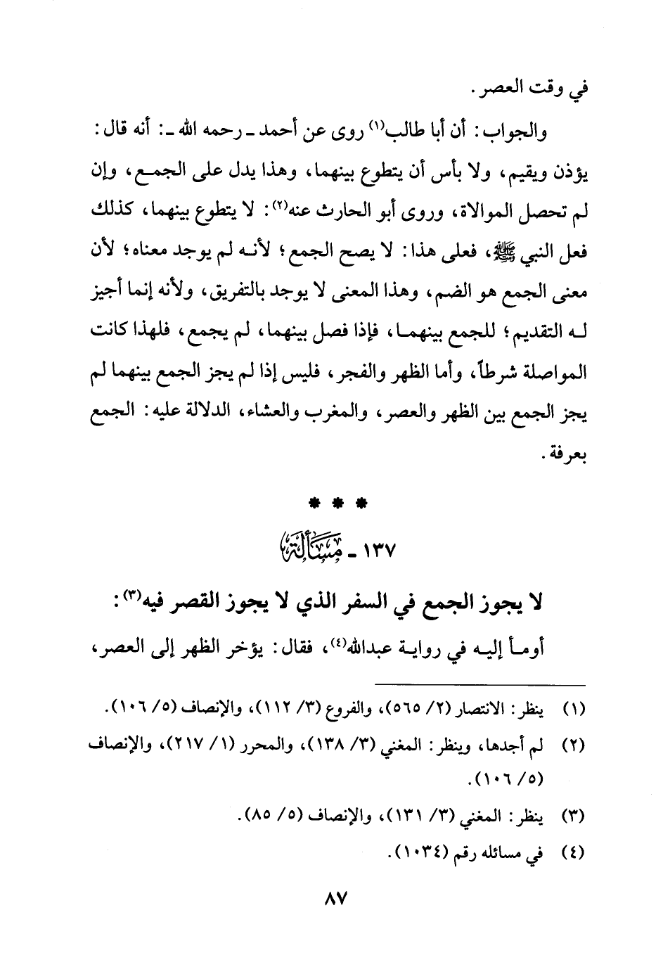 137 - مَسْألَة: لا يجوز الجمع في السفر الذي لا يجوز القصر فيه (¬3):