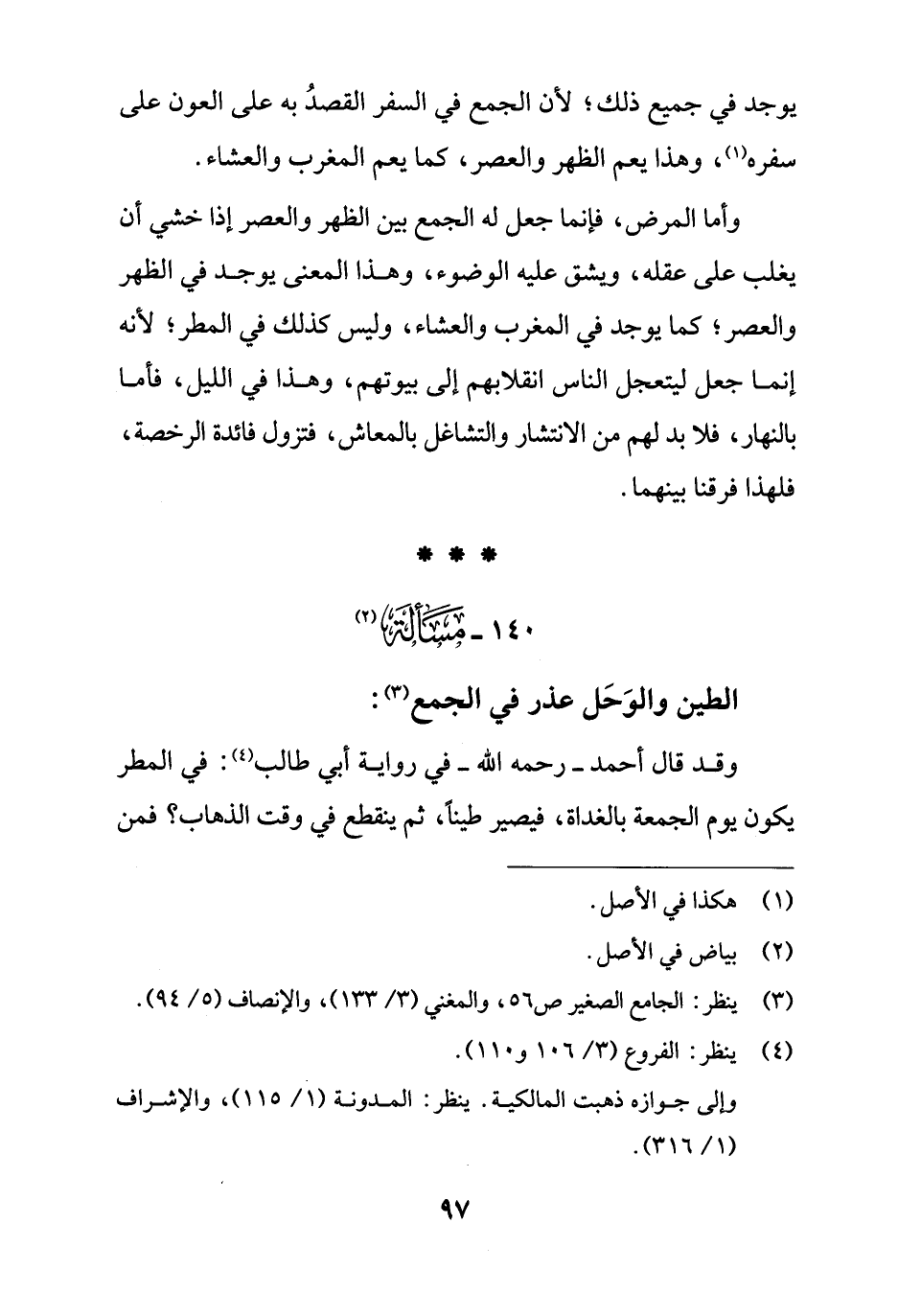 140 - مَسْألَة (¬2): الطين والوَحَل عذر في الجمع (¬3):