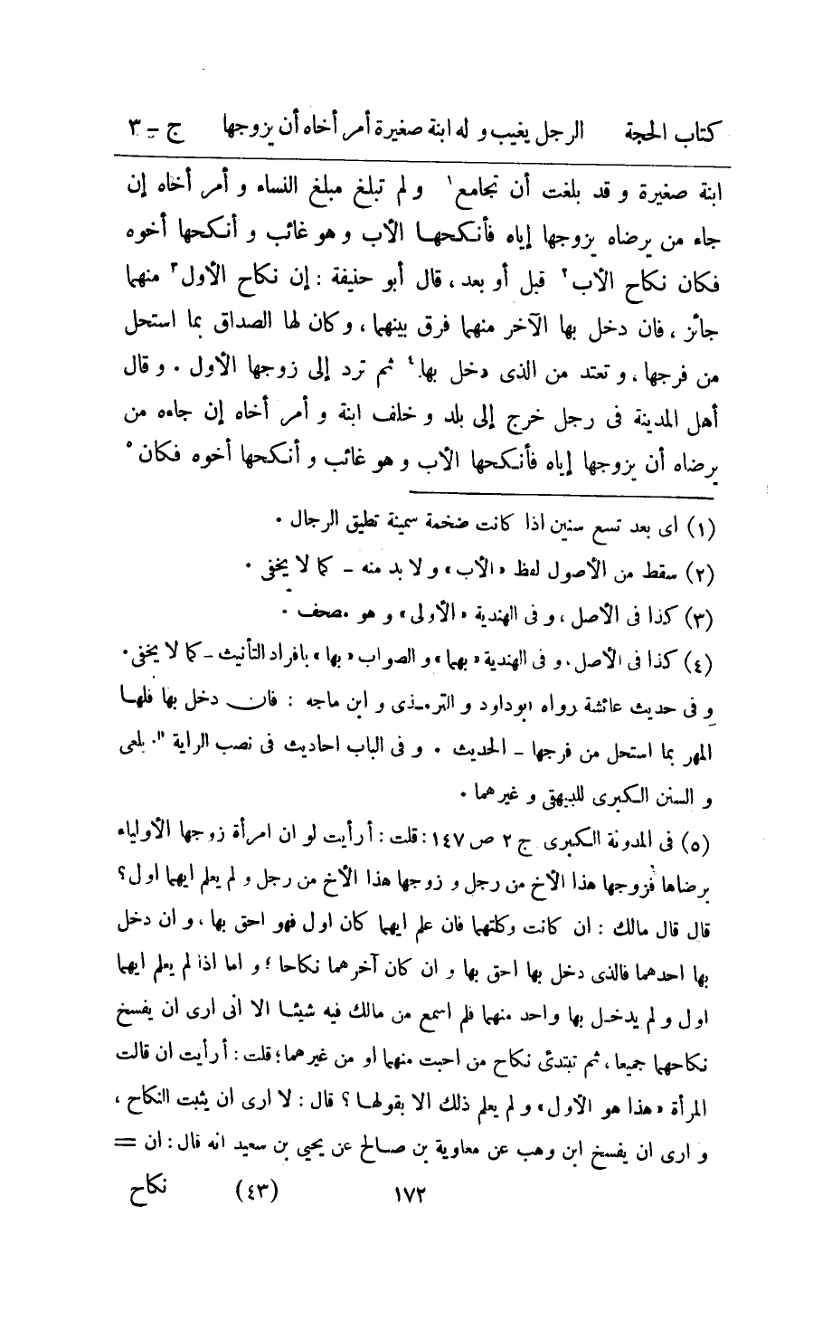ابْنة صَغِيرَة وَقد بلغت ان تجامع وَلم تبلغ مبلغ النِّسَاء وامر اخاه ان جَاءَ من يرضاه يُزَوّجهَا اياه فَأَنْكحهَا الاب وَهُوَ غَائِب وانكحها اخوه فَكَانَ نِكَاح الاب قبل أَو بعد قَالَ ابو حنيفَة ان نِكَاح الأول مِنْهُمَا جَائِز فان دخل بهَا الاخر مِنْهُمَا فرق بَينهمَا وَكَانَ لَهَا الصَدَاق بِمَا اسْتحلَّ من فرجهَا وَتعْتَد من الَّذِي دخل بهَا ثمَّ ترد الى زَوجهَا الاول وَقَالَ اهل الْمَدِينَة فِي رجل خرج إِلَى بلد وَخلف ابْنة وامر اخاه ان جَاءَهُ من يرضاه ان يُزَوّجهَا اياه فَأَنْكحهَا الاب وَهُوَ غَائِب وانكحها اخوه فَكَانَ