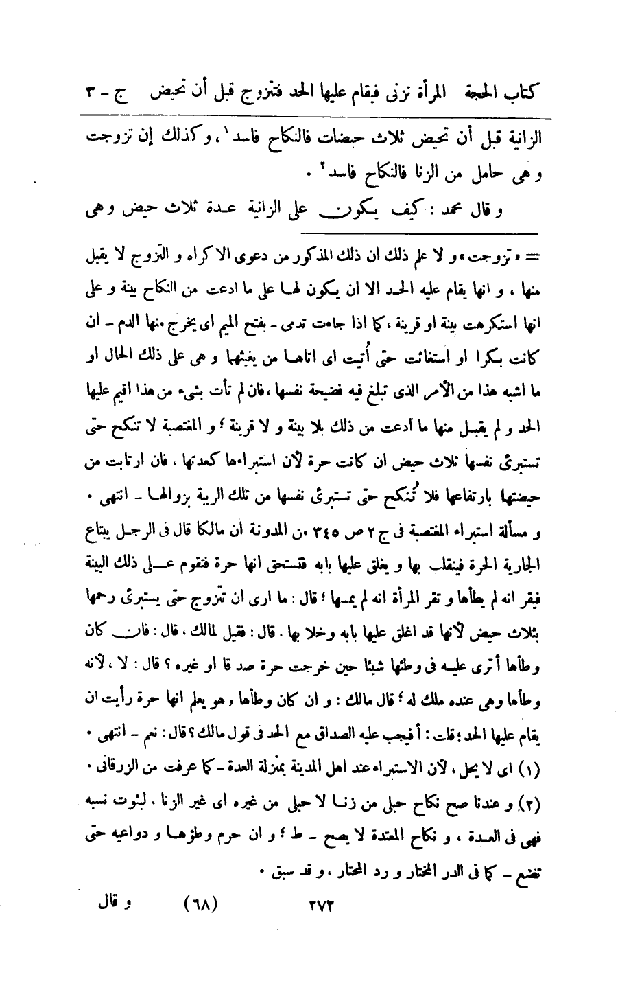 وَقَالَ مُحَمَّد كَيفَ يكون على الزَّانِيَة عدَّة ثَلَاث حيض وَهِي