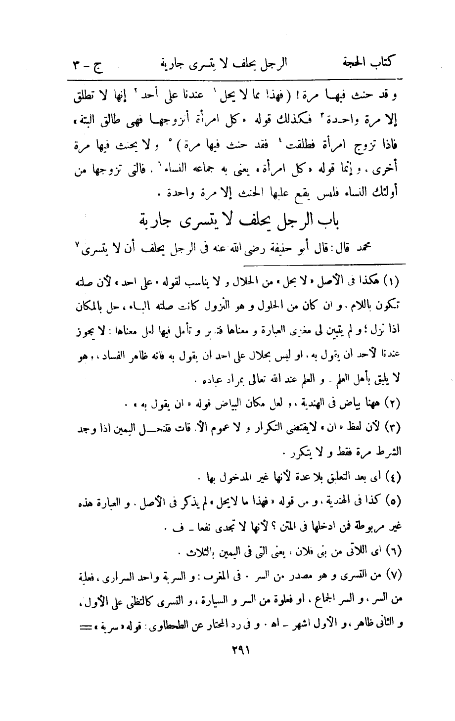 - بَاب الرجل يحلف لَا يتسرى جَارِيَة