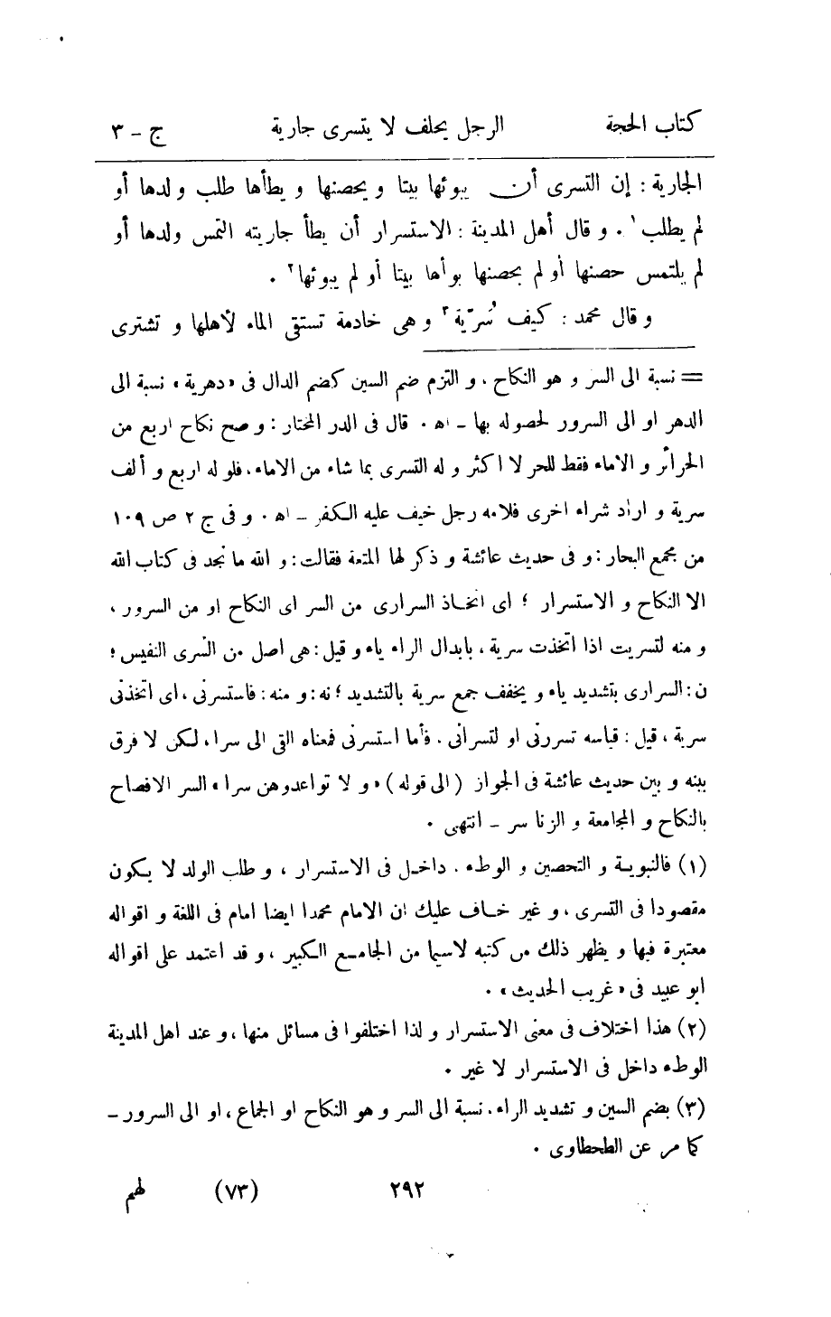 الْجَارِيَة ان التسرى ان يبوئها بَيْتا ويحصنها ويطأها طلب وَلَدهَا اَوْ لم يطْلب وَقَالَ اهل الْمَدِينَة الاستسرار ان يطَأ جَارِيَته التمس وَلَدهَا اَوْ لم يلْتَمس حصنها اَوْ لم يحصنها بوأها بَيْتا أَو لم يبوئها