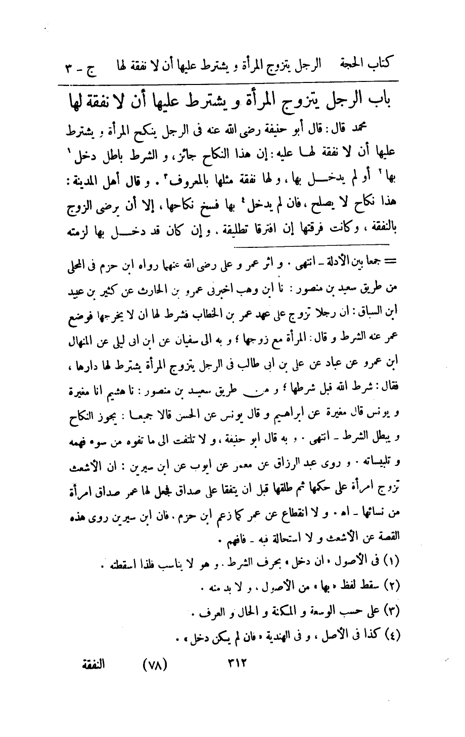 - بَاب الرجل يتَزَوَّج المراة وَيشْتَرط عَلَيْهَا ان لَا نَفَقَة لَهَا