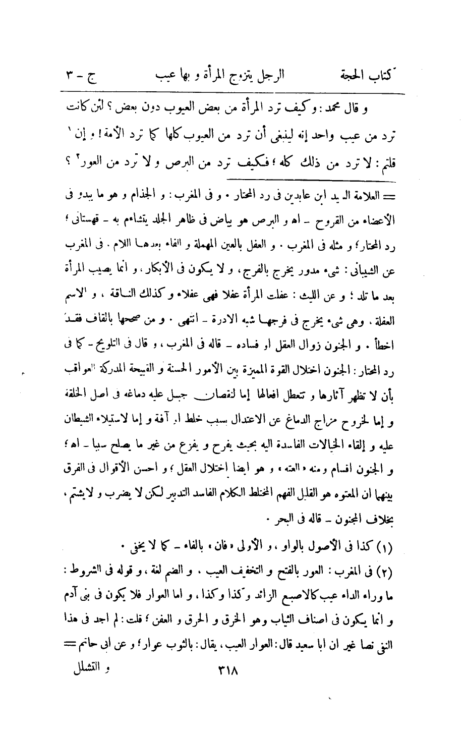 وَقَالَ مُحَمَّد وَكَيف ترد الْمَرْأَة من بعض الْعُيُوب دون بعض لَئِن كَانَت ترد من عيب وَاحِد انه لينبغي ان ترد من الْعُيُوب كلهَا كَمَا ترد الامة وان قُلْتُمْ لَا تزد من ذَلِك كُله فَكيف ترد من البرص وَلَا ترد من العور
