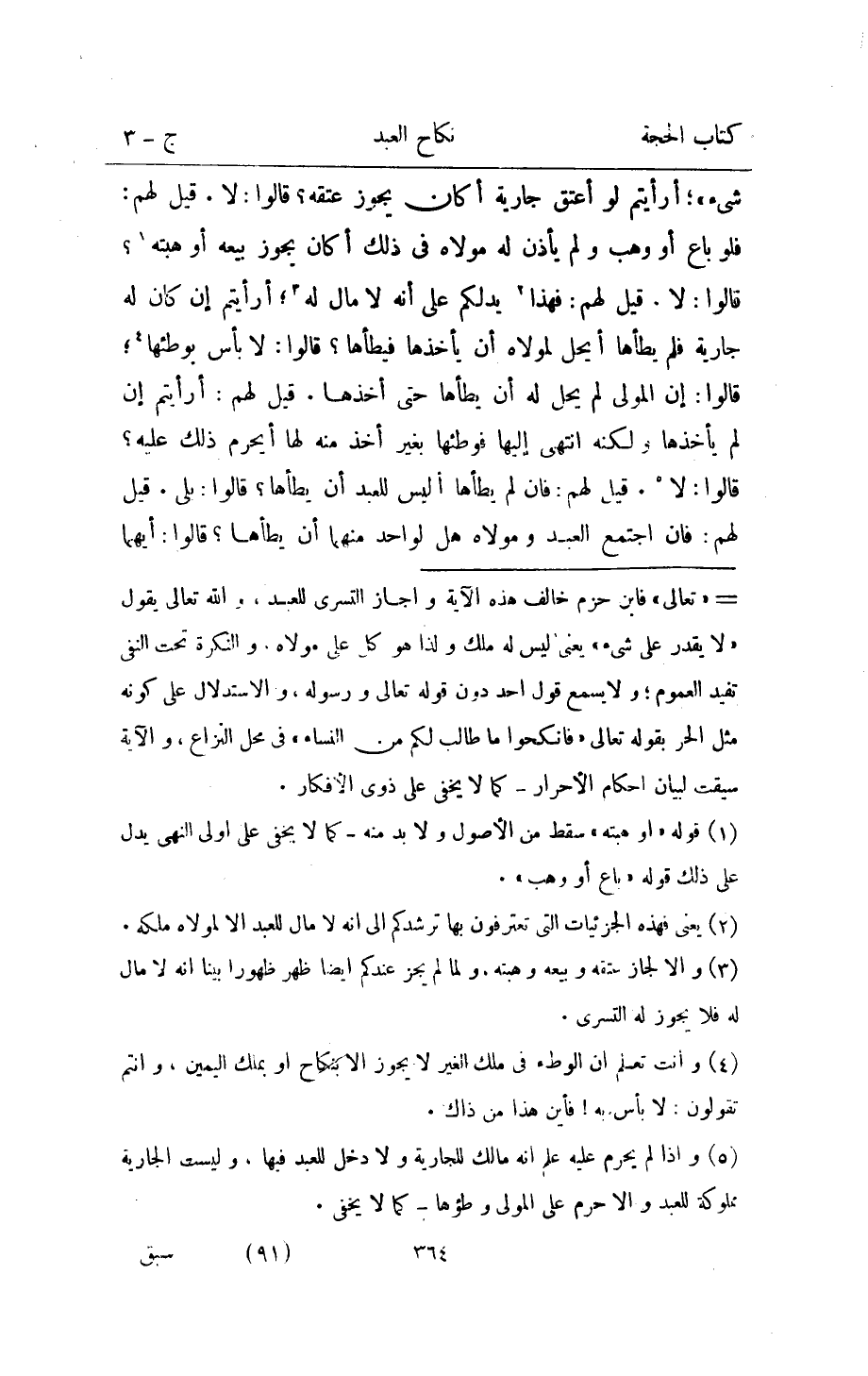 {شَيْء} ارايتم لَو اعْتِقْ جَارِيَة أَكَانَ يجوز عتقه قَالُوا لَا قيل لَهُم فَلَو بَاعَ اَوْ وهب وَلم يَأْذَن لَهُ مَوْلَاهُ فِي ذَلِك أَكَانَ يجوز بَيْعه اَوْ هِبته قَالُوا لَا قيل لَهُم فَهَذَا يدلكم على انه لَا مَال لَهُ ارايتم ان كَانَ لَهُ جَارِيَة فَلم يَطَأهَا ايحل لمَوْلَاهُ ان يَأْخُذهَا فيطأها قالو لَا باس بِوَطْئِهَا قَالُوا ان الْمولى لم يحل لَهُ ان يَطَأهَا حَتَّى أَخذهَا قيل لَهُم أَرَأَيْتُم ان لم يَأْخُذهَا وَلكنه انْتهى اليها فَوَطِئَهَا بِغَيْر اخذ مِنْهُ لَهَا أيحرم ذَلِك عَلَيْهِ قَالُوا لَا قيل لَهُم فان لم يَطَأهَا أَلَيْسَ للْعَبد أَن يَطَأهَا قَالُوا بلَى قيل لَهُم فان اجْتمع العَبْد ومولاه هَل لوَاحِد مِنْهُمَا ان يَطَأهَا قَالُوا أَيهمَا
