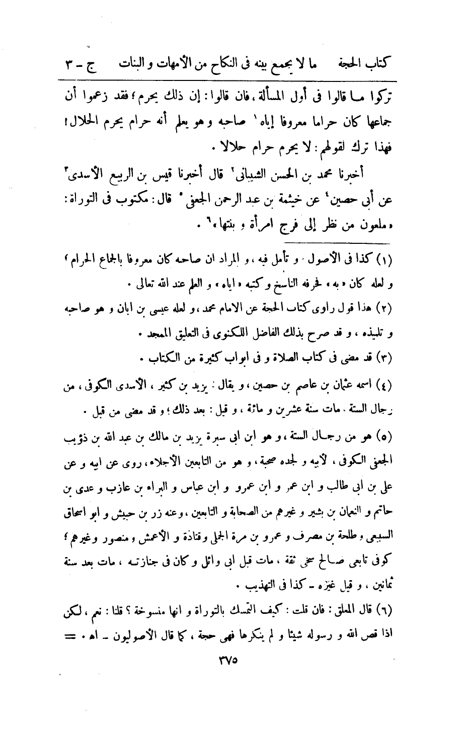 اُخْبُرْنَا مُحَمَّد بن الْحسن الشَّيْبَانِيّ قَالَ اُخْبُرْنَا قيس بن الرّبيع الاسدي عَن ابي حُصَيْن عَن خَيْثَمَة بن عبد الرَّحْمَن الْجعْفِيّ قَالَ مَكْتُوب فِي التَّوْرَاة مَلْعُون من نظر الى فرج امراة وبنتها
