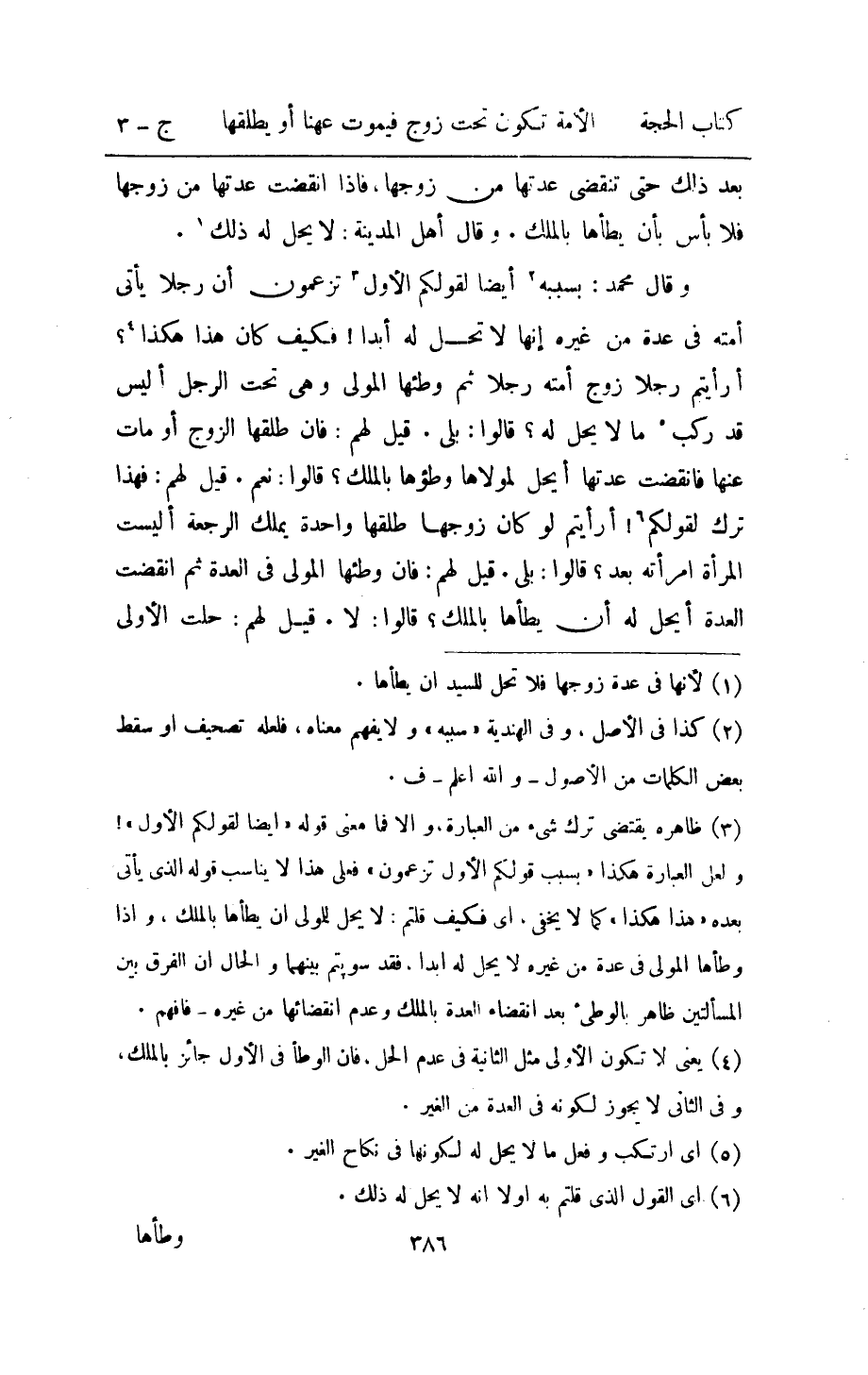 وَقَالَ مُحَمَّد بِسَبَبِهِ ايضا لقولكم الاول تَزْعُمُونَ ان رجلا ياتي امته فِي عدَّة من غَيره انها لَا تحل لَهُ ابدا فَكيف كَانَ هَذَا هَكَذَا ارايتم رجلا زوج امته رجلا ثمَّ وَطئهَا الْمولى وَهِي تَحت الرجل الْيَسْ قد ركب مَا لَا يحل لَهُ قَالُوا بلَى قيل لَهُم فان طَلقهَا الزَّوْج اَوْ مَاتَ عَنْهَا فانقضت عدتهَا ايحل لمولاها وَطْؤُهَا بِالْملكِ قَالُوا نعم قيل لَهُم فَهَذَا ترك لقولكم ارايتم لَو كَانَ زَوجهَا طَلقهَا وَاحِدَة يملك الرّجْعَة اليست المراة امراته بعد قَالُوا بلَى قيل لَهُم فان وَطئهَا الْمولى فِي الْعدة ثمَّ انْقَضتْ الْعدة ايحل لَهُ ان يطاها بِالْملكِ قَالُوا لَا قيل لَهُم حلت الاولى