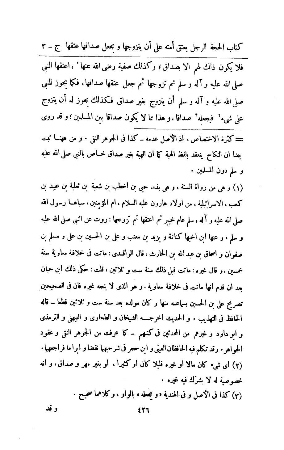 فَلَا يكون ذَلِك لَهُم الا بِصَدَاق وَكَذَلِكَ صَفِيَّة رَضِي الله عَنْهَا اعتقها النَّبِي صلى الله عَلَيْهِ وَسلم ثمَّ تزَوجهَا ثمَّ جعل عتقهَا صَدَاقهَا فَكَمَا يجوز للنَّبِي صلى الله عَلَيْهِ وَسلم ان يتَزَوَّج بِغَيْر صدَاق فَكَذَلِك يجوز لَهُ ان يتَزَوَّج على شَيْء فَيَجْعَلهُ صَدَاقا وَهَذَا مِمَّا لَا يكون صَدَاقا بَين الْمُسلمين وَقد روى