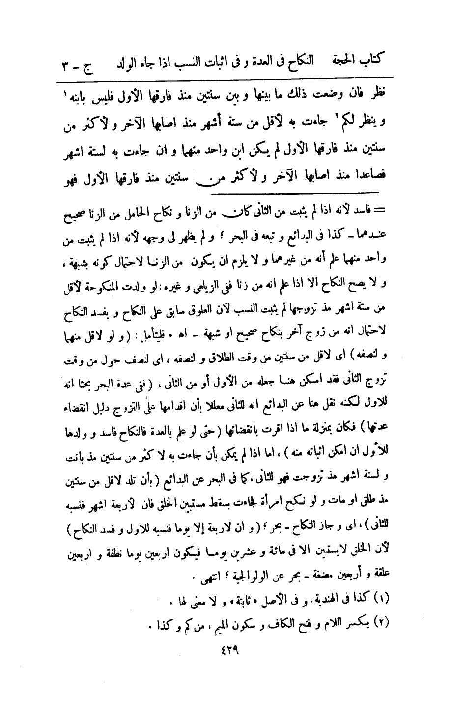 نظر فان وضعت ذَلِك مَا بَينهَا وَبَين سنتَيْن مُنْذُ فَارقهَا الأول فَلَيْسَ بِابْنِهِ وَينظر لكم جَاءَت بِهِ لاقل من سِتَّة اشهر مُنْذُ اصابها الاخر ولاكثر من سنتَيْن مُنْذُ فَارقهَا الاول لم يكن ابْن وَاحِد مِنْهُمَا وان جَاءَت بِهِ لسِتَّة اشهر فَصَاعِدا مُنْذُ اصابها الاخر ولاكثر من سنتَيْن مُنْذُ فَارقهَا الأول فَهُوَ