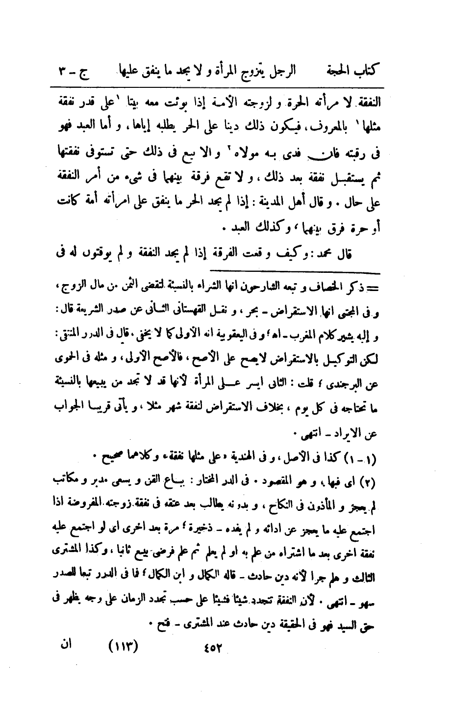 النَّفَقَة لامْرَأَته الْحرَّة ولزوجته الامته اذا بوئت مَعَه بَيْتا على قدر نَفَقَة مثلهَا بِالْمَعْرُوفِ فَيكون ذَلِك دينا على الْحر يَطْلُبهُ اياها واما العَبْد فَهُوَ فِي رقبته فان فدى بِهِ مَوْلَاهُ والا بيع فِي ذَلِك حَتَّى تستوفي نَفَقَتهَا ثمَّ يسْتَقْبل نَفَقَة بعد ذَلِك وَلَا تقع فرقة بَينهمَا فِي شئ من امْر النَّفَقَة على حَال وَقَالَ اهل الْمَدِينَة اذا لم يجد الْحر مَا ينْفق على امراته امة كَانَت اَوْ حرَّة فرق بَينهمَا وَكَذَلِكَ العَبْد
