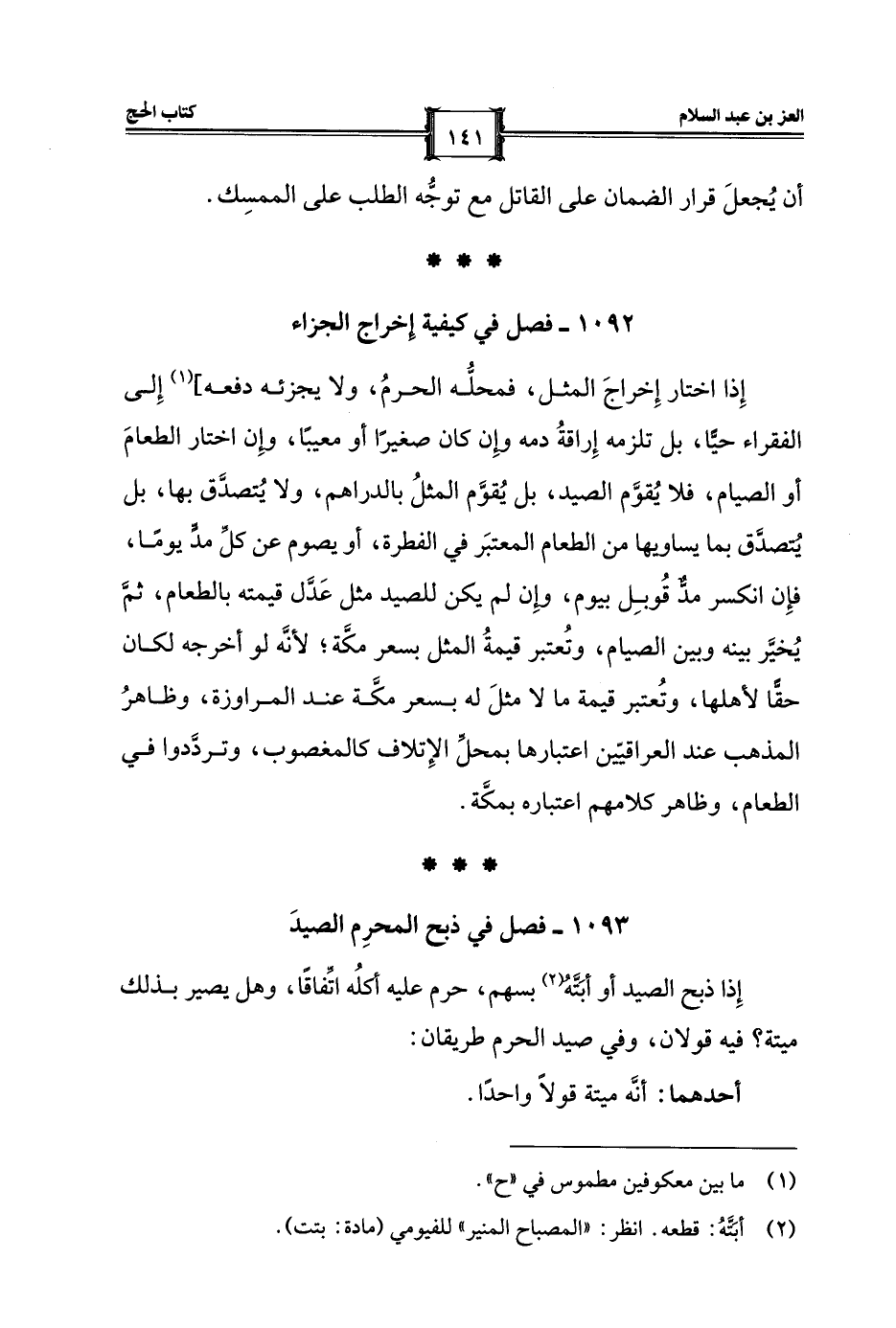 1092 - فصل في كيفية إخراج الجزاء