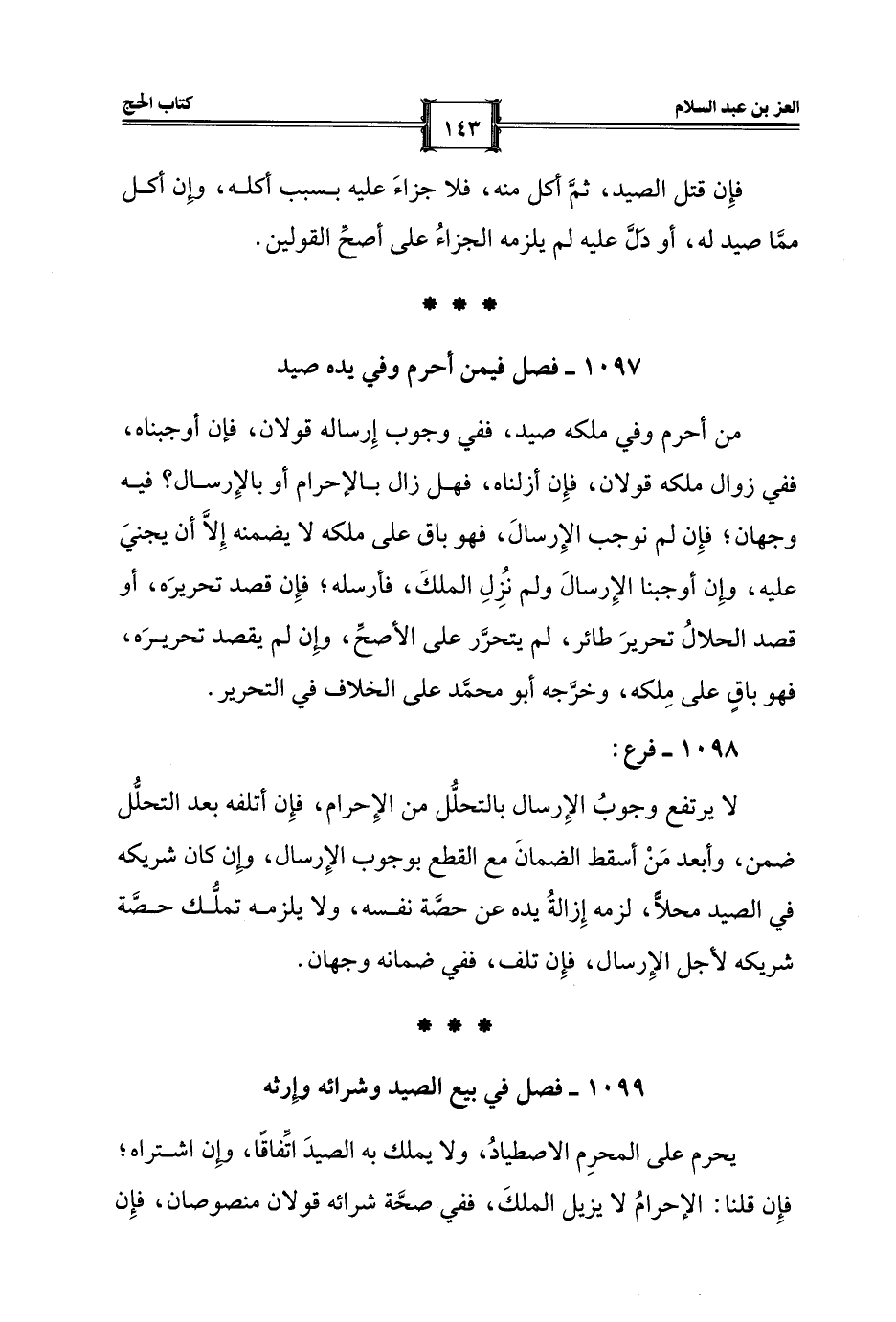 1099 - فصل في بيع الصيد وشرائه وإِرثه