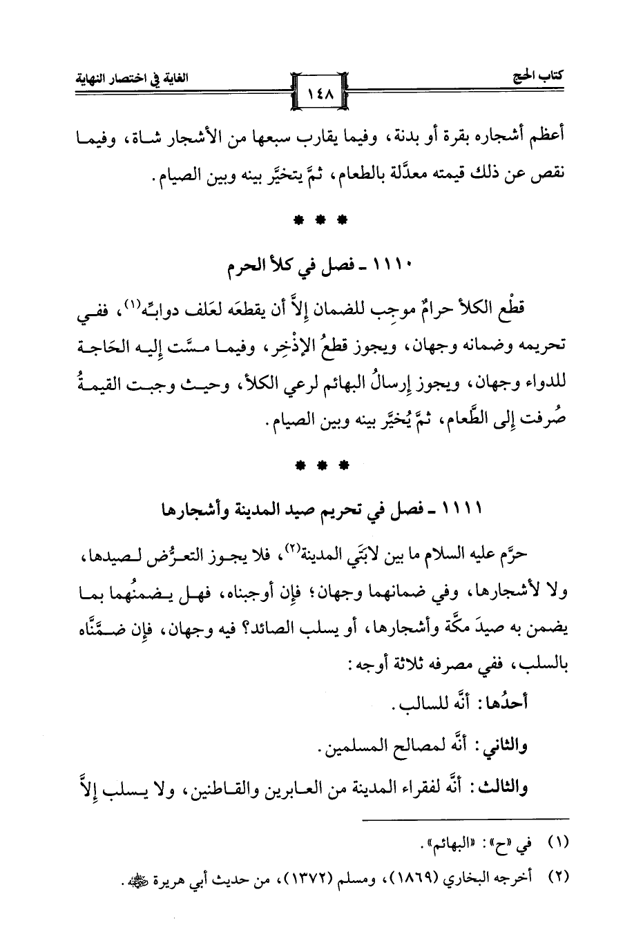 1111 - فصل في تحريم صيد المدينة وأشجارها