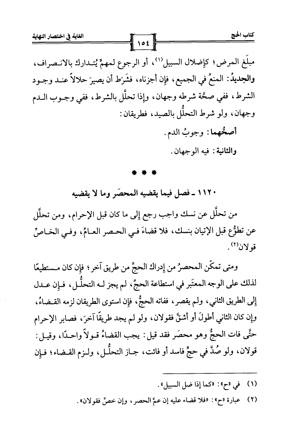 1120 - فصل فيما يقضيه المحصَر وما لا يقضيه