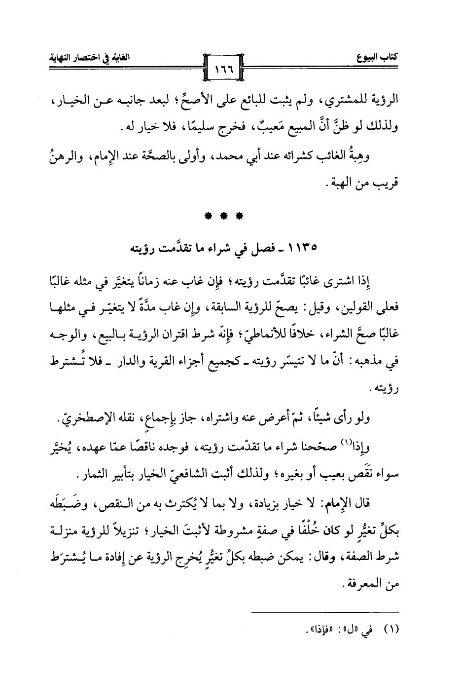 1135 - فصل في شراء ما تقدَّمت رؤيته