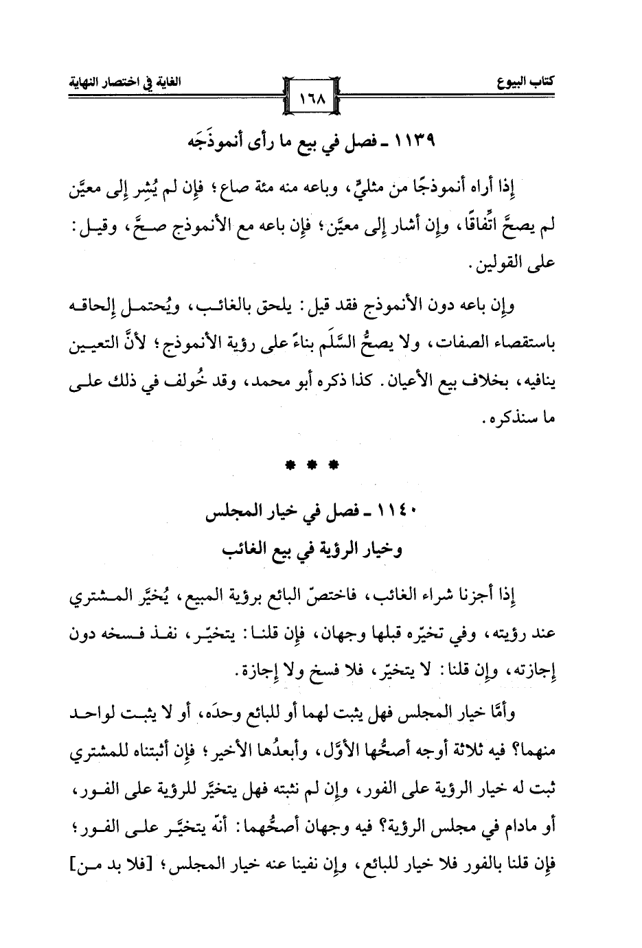 1139 - فصل في بيع ما رأى أنموذَجَه