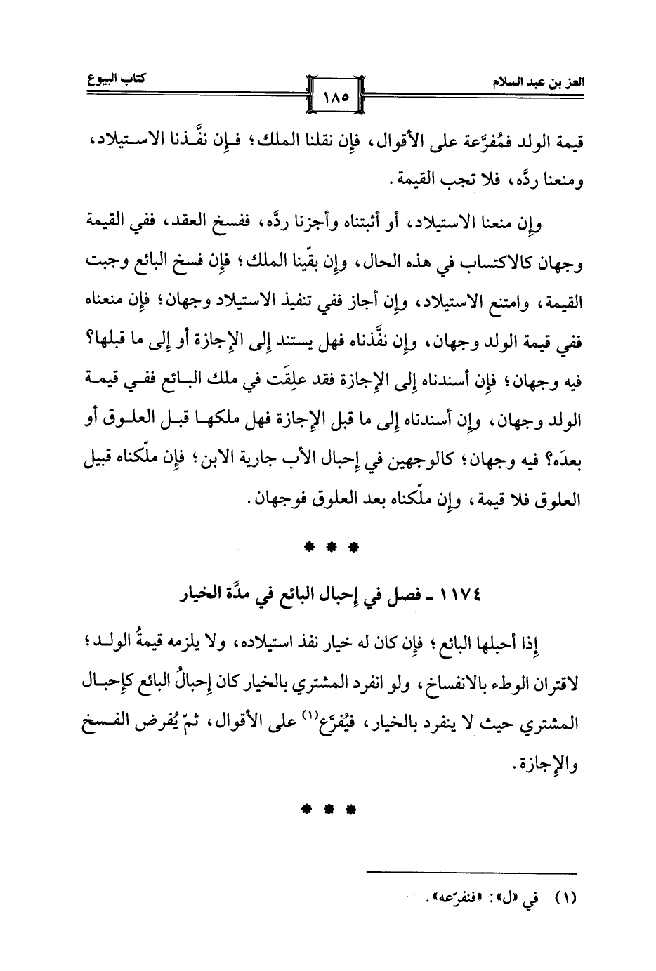 1174 - فصل في إِحبال البائع في مدَّة الخيار