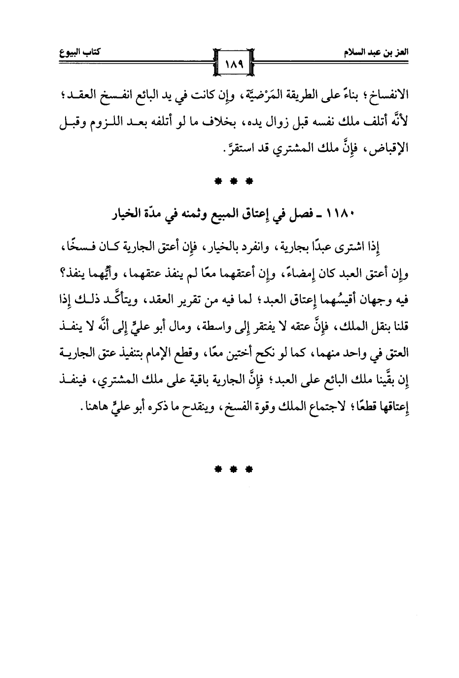 1180 - فصل في إِعتاق المبيع وثمنه في مدّة الخيار