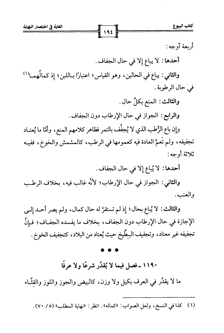 (¬1) كذا في النسخ، ولعل الصواب: "كماله". انظر: "نهاية المطلب" (5/ 70).