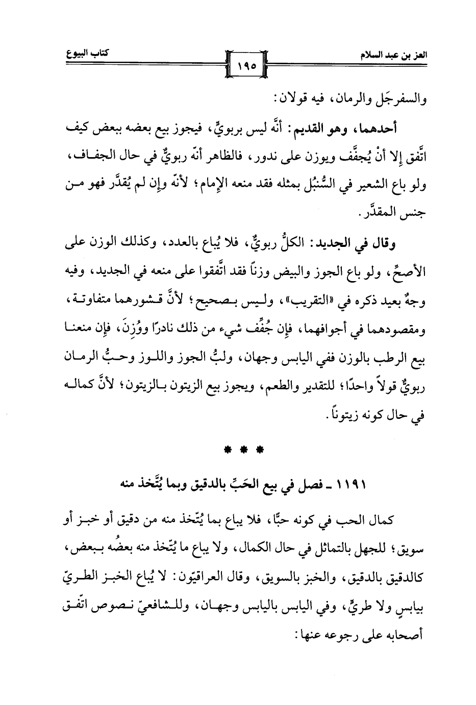 1191 - فصل في بيع الحَبِّ بالدقيق وبما يُتَّخذ منه