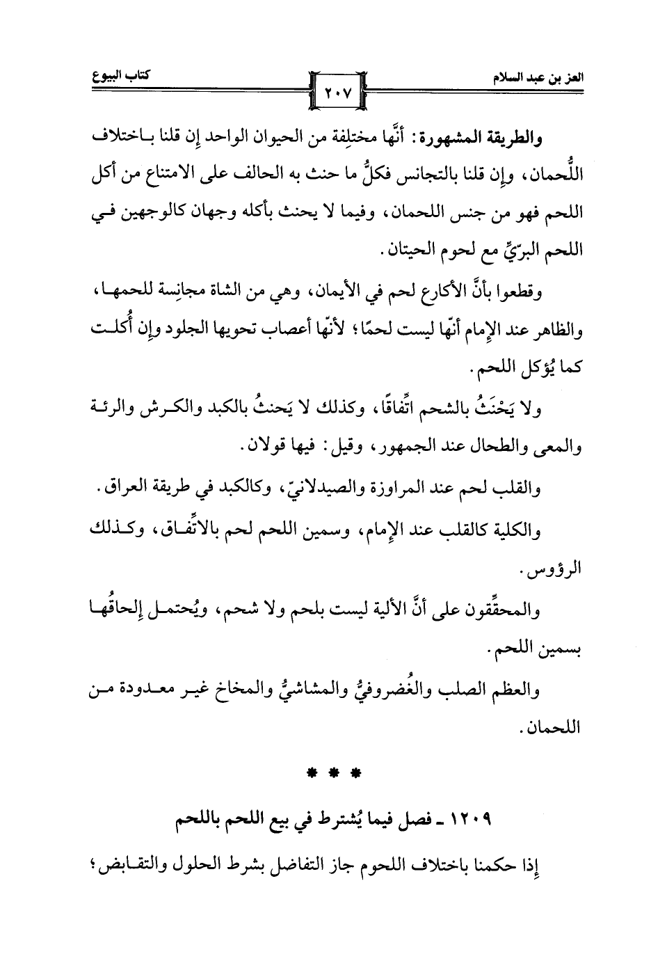1209 - فصل فيما يُشترط في بيع اللحم باللحم