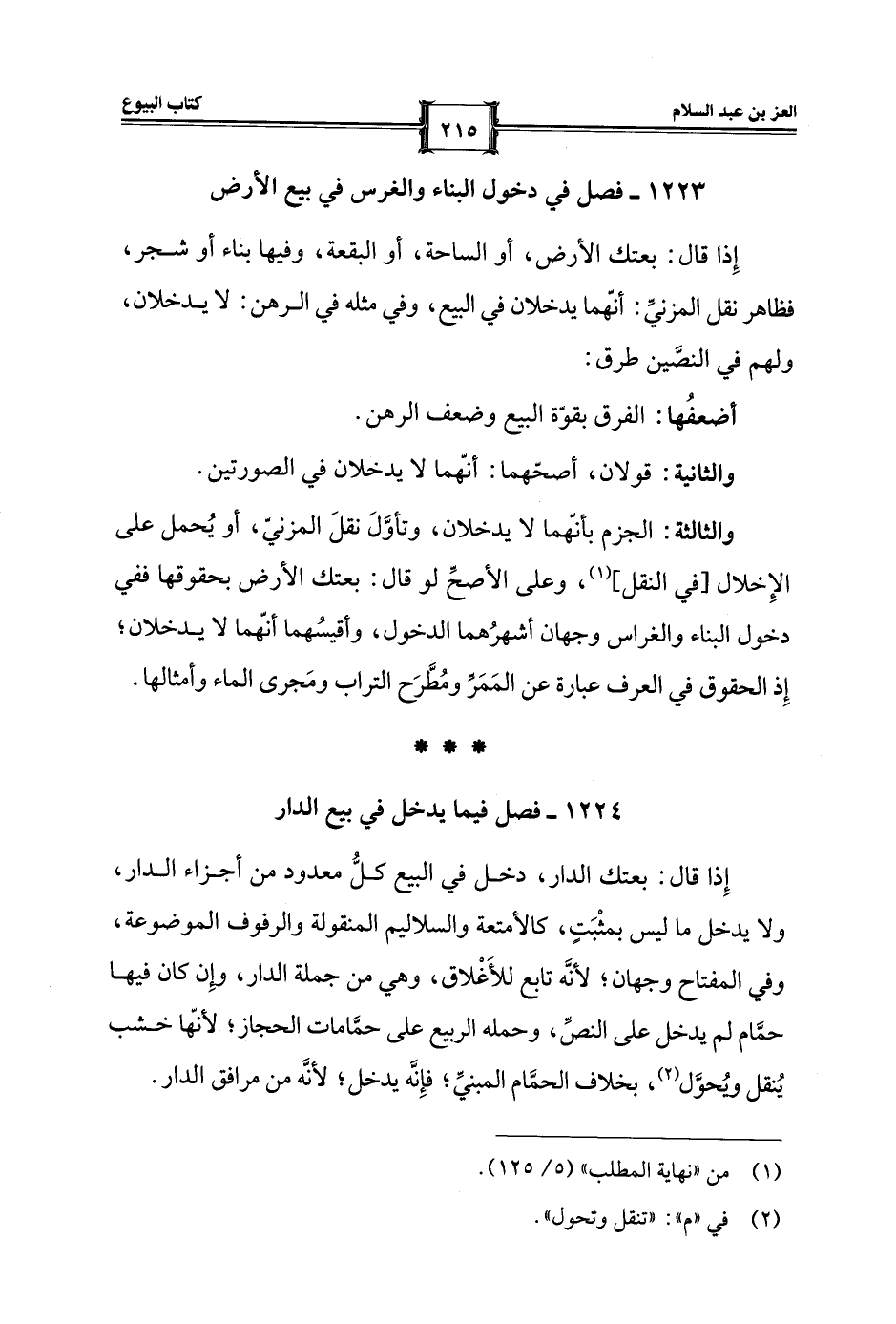 1223 - فصل في دخول البناء والغرس في بيع الأرض