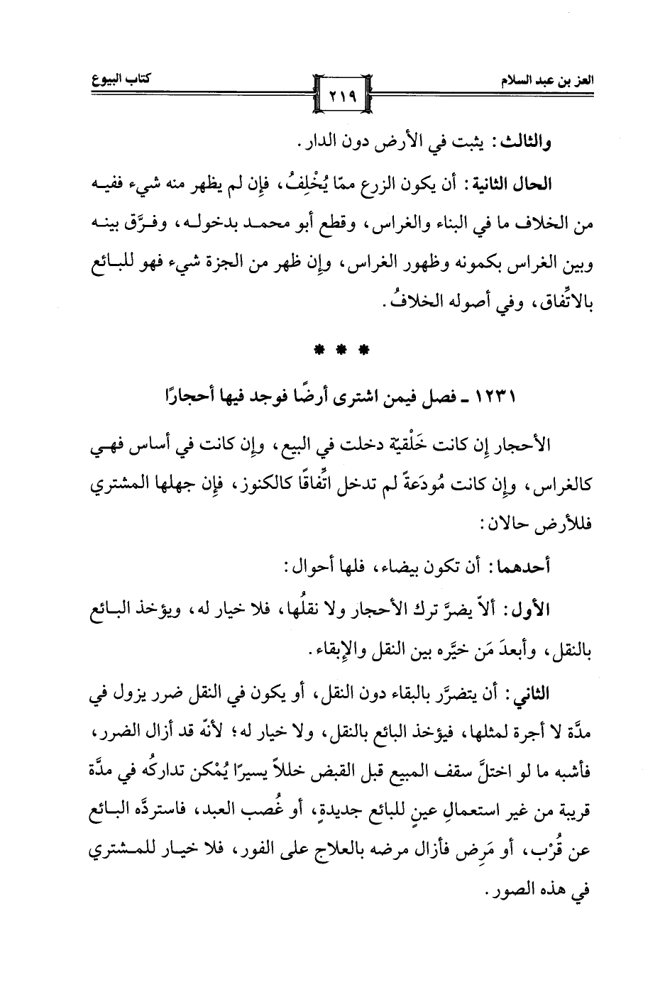 1231 - فصل فيمن اشترى أرضًا فوجد فيها أحجارًا