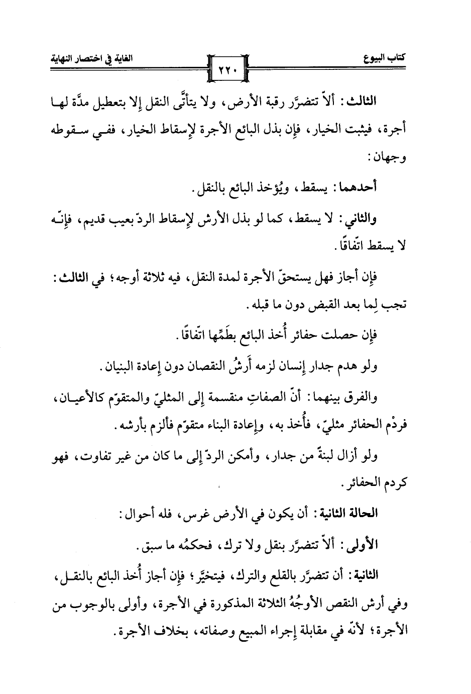 الثالث: ألّا تتضرَّر رقبة الأرض، ولا يتأتَّى النقل إِلا بتعطيل مدَّة لها أجرة، فيثبت الخيار، فإِن بذل البائع الأجرة لإِسقاط الخيار، ففي سقوطه وجهان: