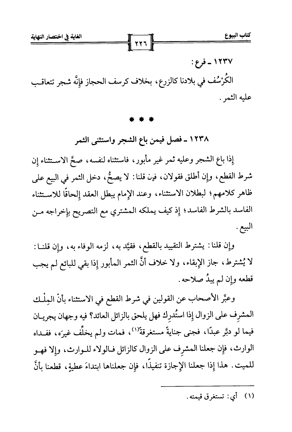 1238 - فصل فيمن باع الشجر واستثنى الثمر