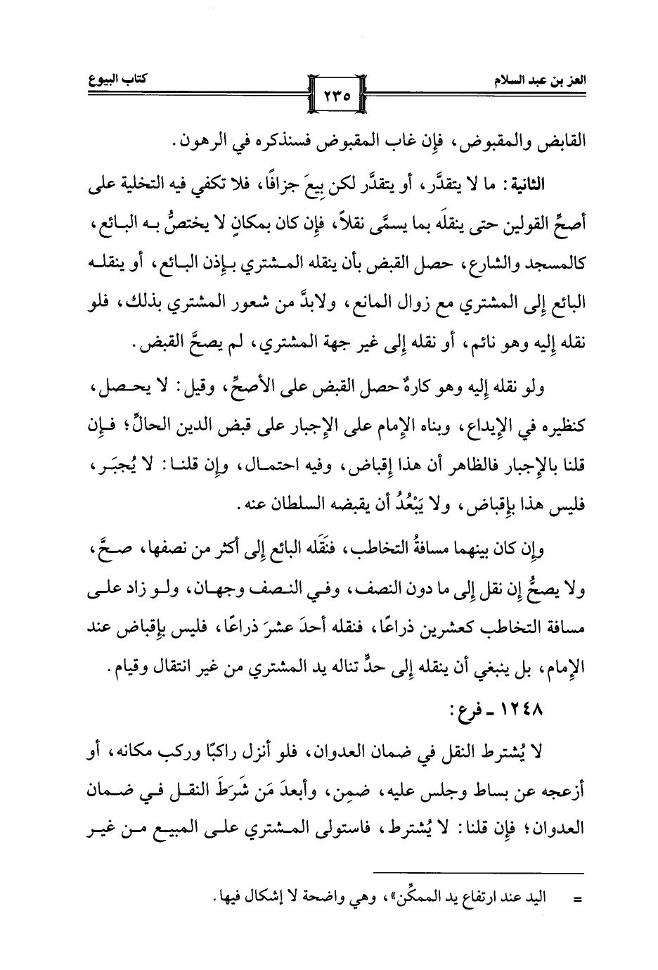 وإِن كان بينهما مسافةُ التخاطب، فنَقَله البائع إِلى أكثر من نصفها، صحَّ، ولا يصحُّ إِن نقل إِلى ما دون النصف، وفي النصف وجهان، ولو زاد على مسافة التخاطب كعشرين ذراعًا، فنقله أحدَ عشرَ ذراعًا، فليس بإِقباض عند الإِمام، بل ينبغي أن ينقله إِلى حدٍّ تناله يد المشتري من غير انتقال وقيام.