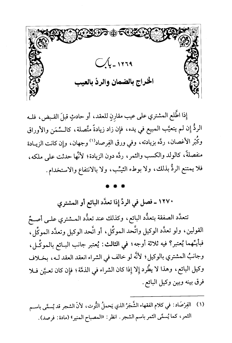 1270 - فصل في الردِّ إِذا تعدَّد البائع أو المشتري