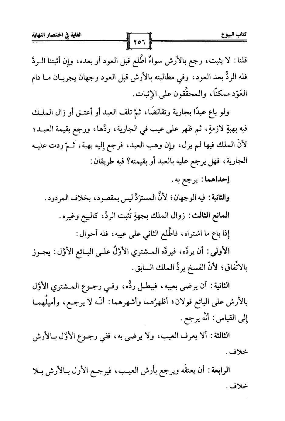 الثانية: أن يرضى بعيبه، فيبطل ردُّه، وفي رجوع المشتري الأوَّل بالأرش على البائع قولان؛ أظهرُهما وأشهرهما: أنّه لا يرجع، وأميلُهما إِلى القياس: أنَّه يرجع.